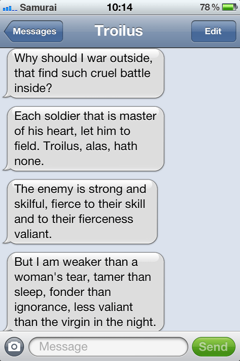 Young Troilus shares his private thoughts once more.
